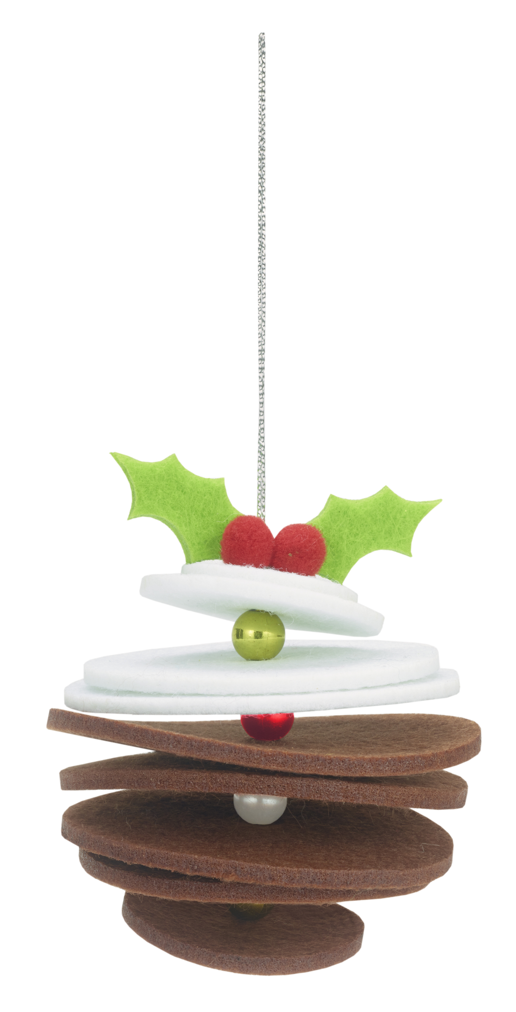 Last, but certainly not least, comes an arty Christmas pudding decoration, made from discs of felt and metallic beads with a handy silver loop to hang it up. Measures 70 x 70 x 70mm.